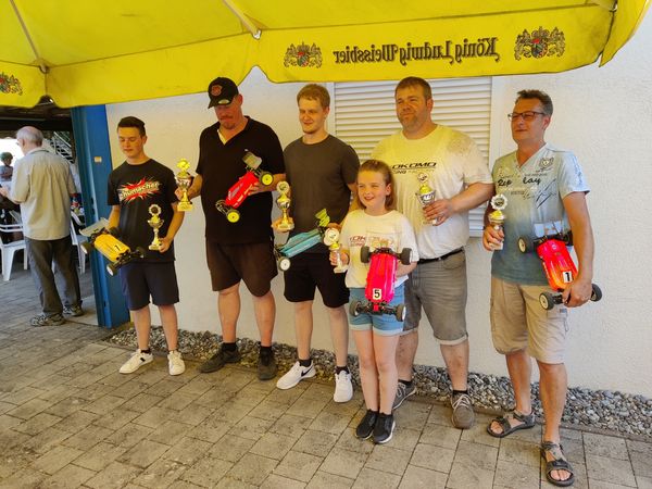 Einmal mehr konnten sich alle von der Einmaligkeit der Singener Anlage überzeugen. Einfach krass der Qualitätsunterschied im Vergleich zu unseren CH-Strecken. Ca 4000m2, je eine Off- und eine Onroadpiste, fest gemauerte Fahrerstände, Zeitnehmerhäuschen, „Grillbude“, gedeckte Schrauberplätze und natürlich das Vereinshaus, das einem Einfamilienhaus zur Ehre gereichen kann.
